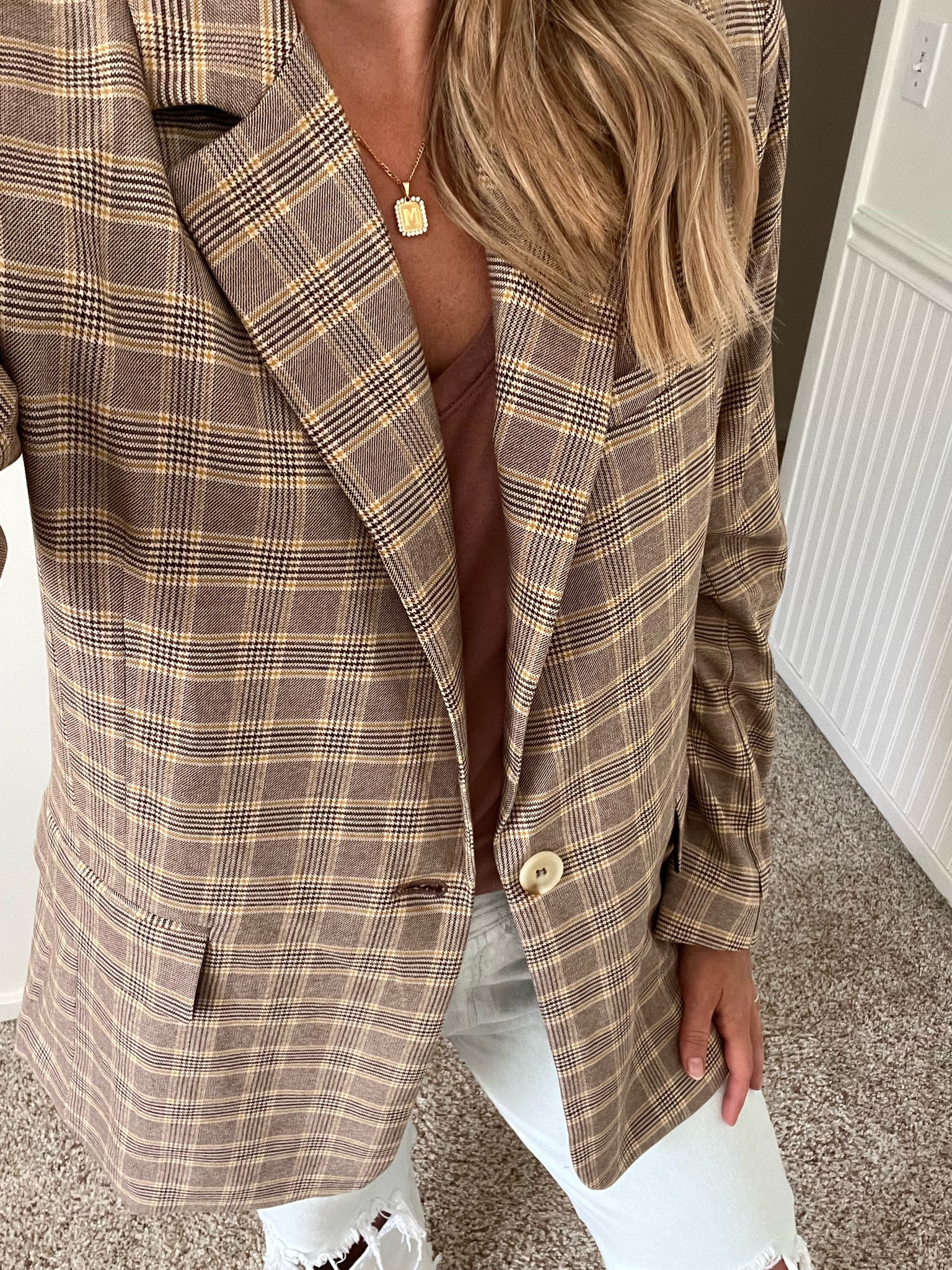 Free People Mari Plaid Blazer in Winter Wheat FINAL SALE Very well made.