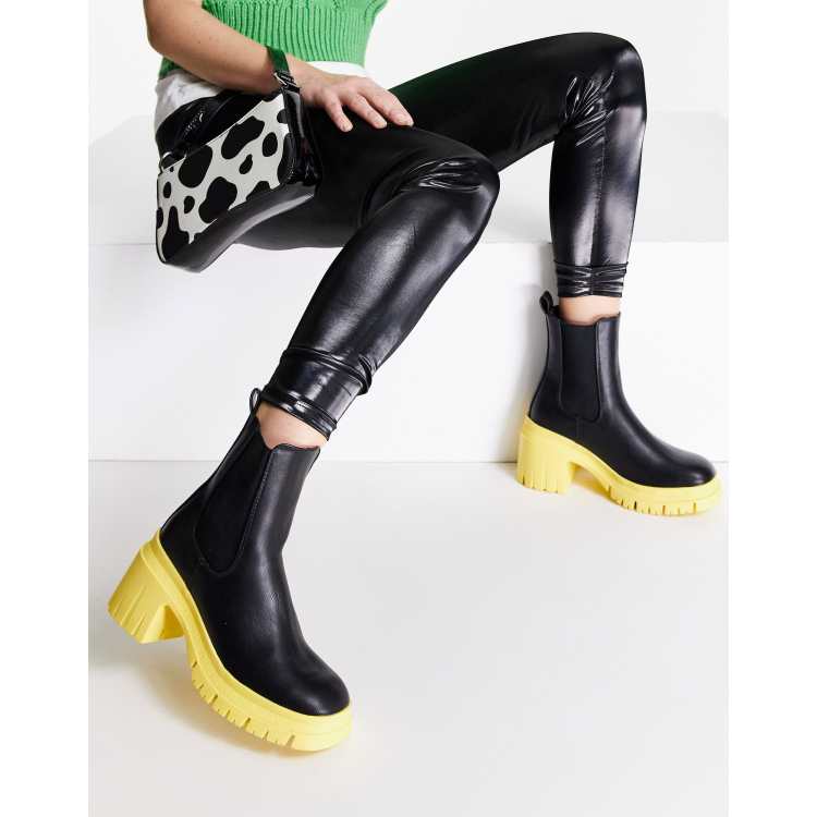 ASOS DESIGN Rio mid heeled chelsea boots in black and yellow Very well made.