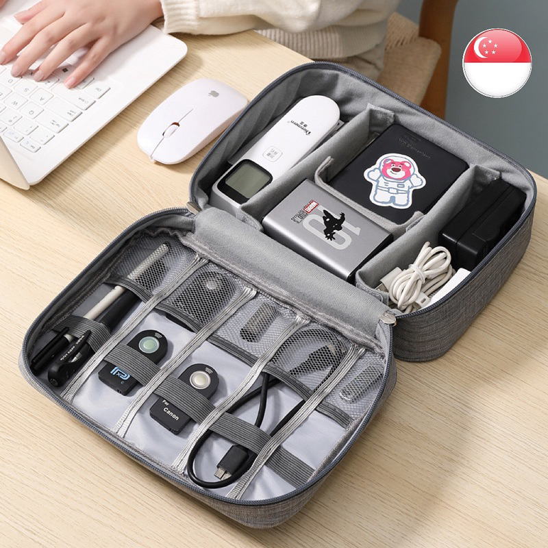SG Stock Travel Organizer Bag Electronics Bag Multi Compartment USB Cable Water Resistance Gadget Pouch Dual Layer Very well made.