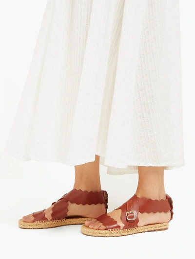 Lauren Scalloped edge Leather Espadrille Sandals In Brown Very well made.