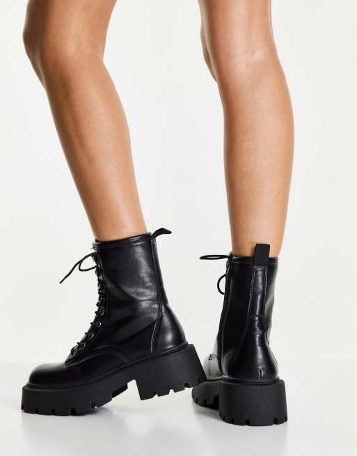 Truffle Collection square toe chunky lace up boots in black Very well made.