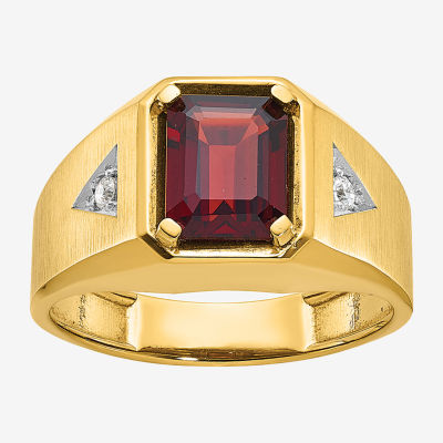 Mens Diamond Accent Genuine Red Garnet 14K Gold Fashion Ring Very well made.