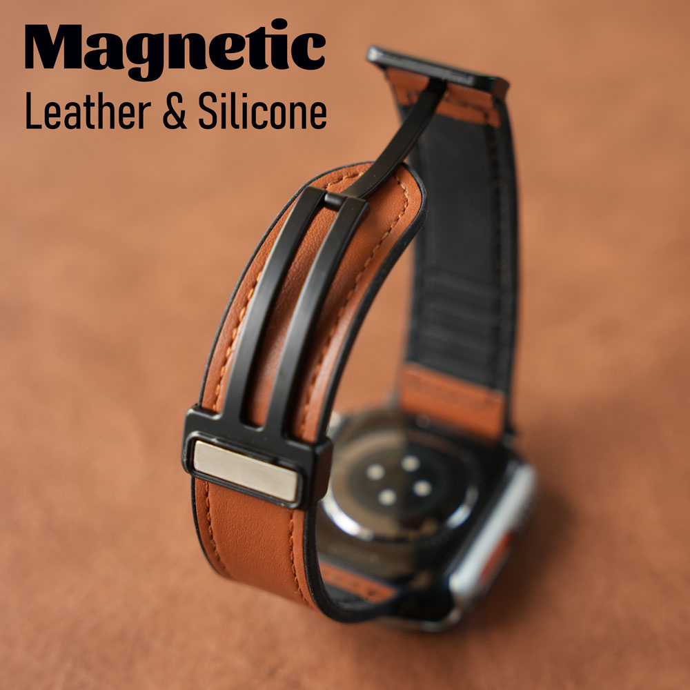 Magnetic Folding Clasp Silicone Leather Strap for iWatch Ultra Very well made.