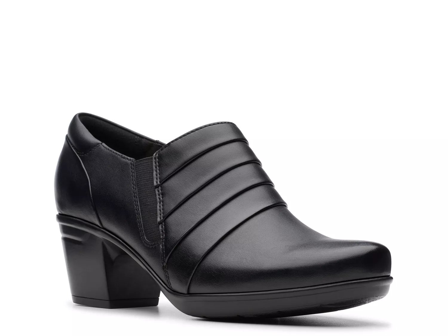 Clarks Emslie Lulin Womens Hook Loop Pump Heels Leather Black Very well made.