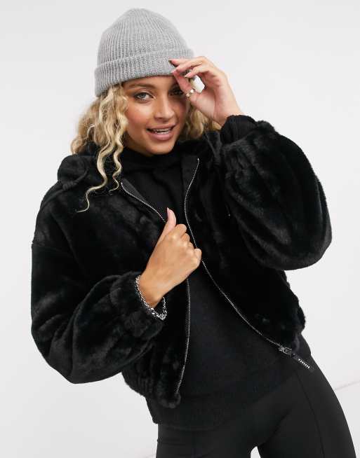 Bershka Giacca corta in ecopelliccia nera Very well made.