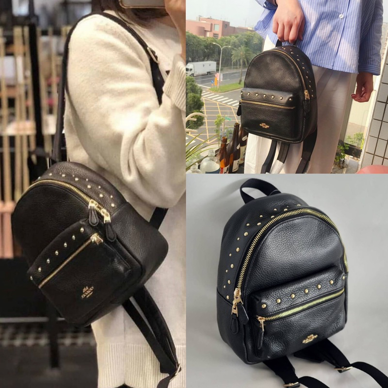 Coach F45070 Studded Mini Charlie Backpack Pebble Leather Black Very well made.