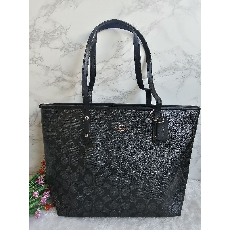 Women s COACH F58292 Signature City Zip Tote. IM Brown Black Very well made.