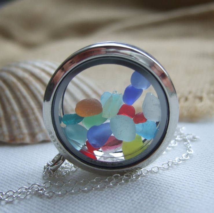 Sea glass locket rainbow sea glass memory neck Folksy Very well made.
