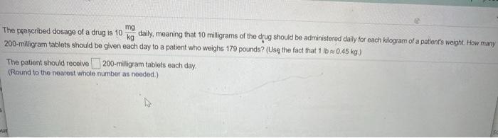 Solved mg The prescribed dosage of a drug is 10 kg daily Chegg Very well made.