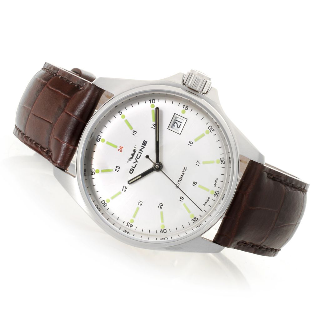 Glycine 36mm Combat Sub Swiss Made Automatic Leather Strap Watch on sale at shophq 659 096 Very well made.