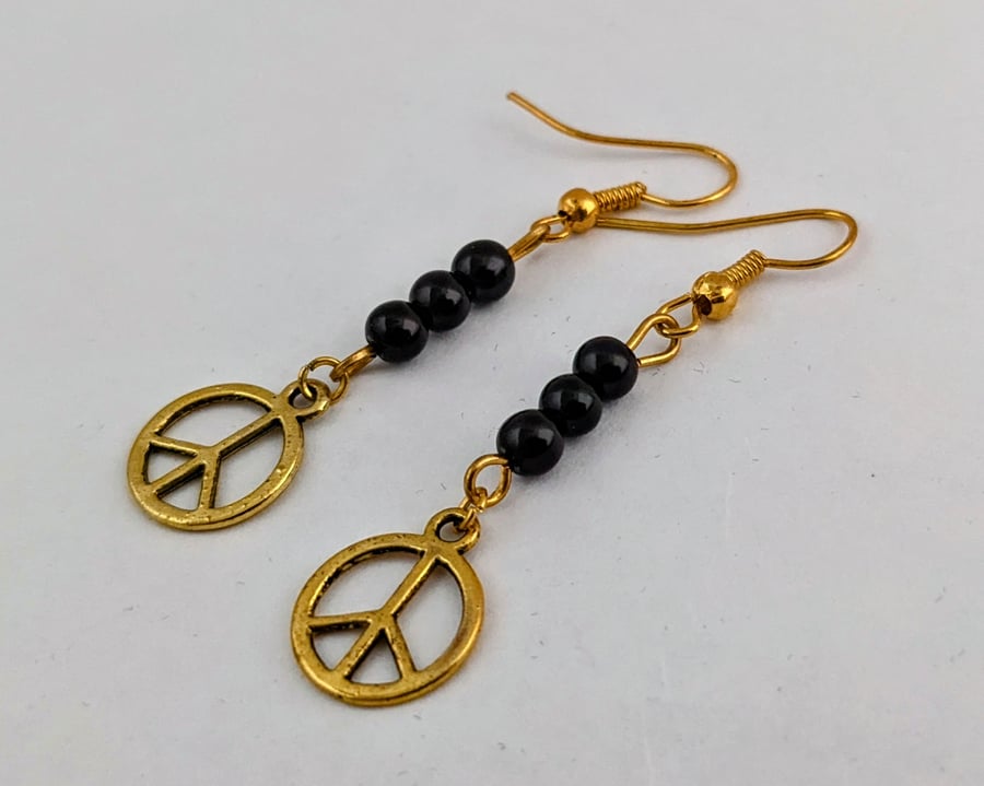 Hand Hammered Peace Symbol Gold dipped Earrings on French Hooks Very well made.