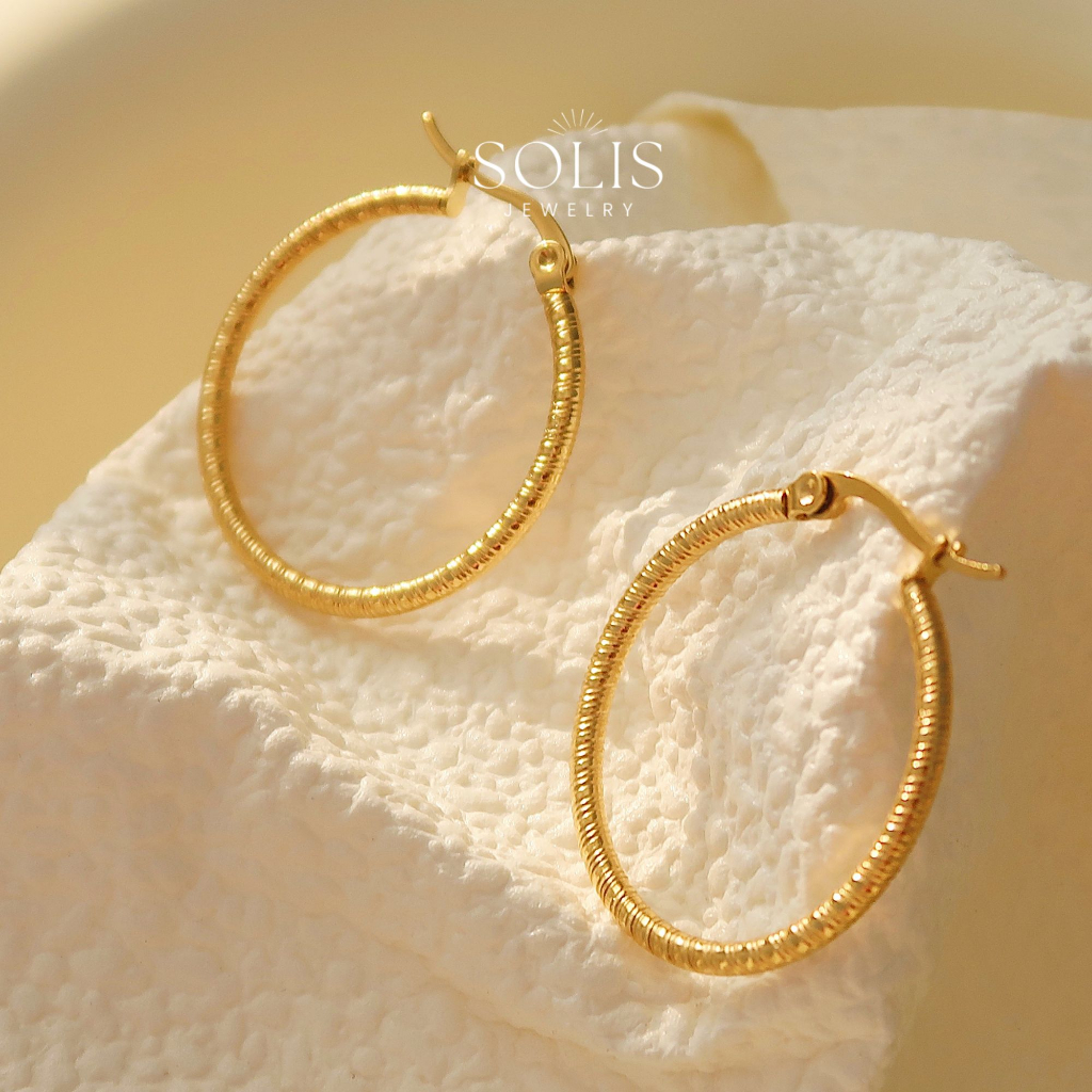 Big Thin Braided Hoop Earrings Huggies 18K Gold Plated 316L Very well made.