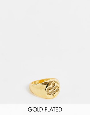 ASOS DESIGN 14k gold plated sovereign ring with snake design Very well made.