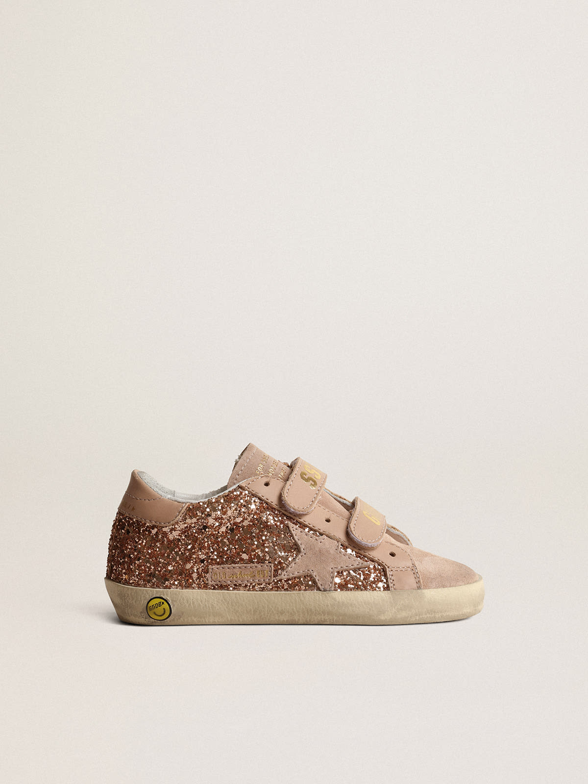 Old School Young in peach pink glitter with pink suede star Very well made.