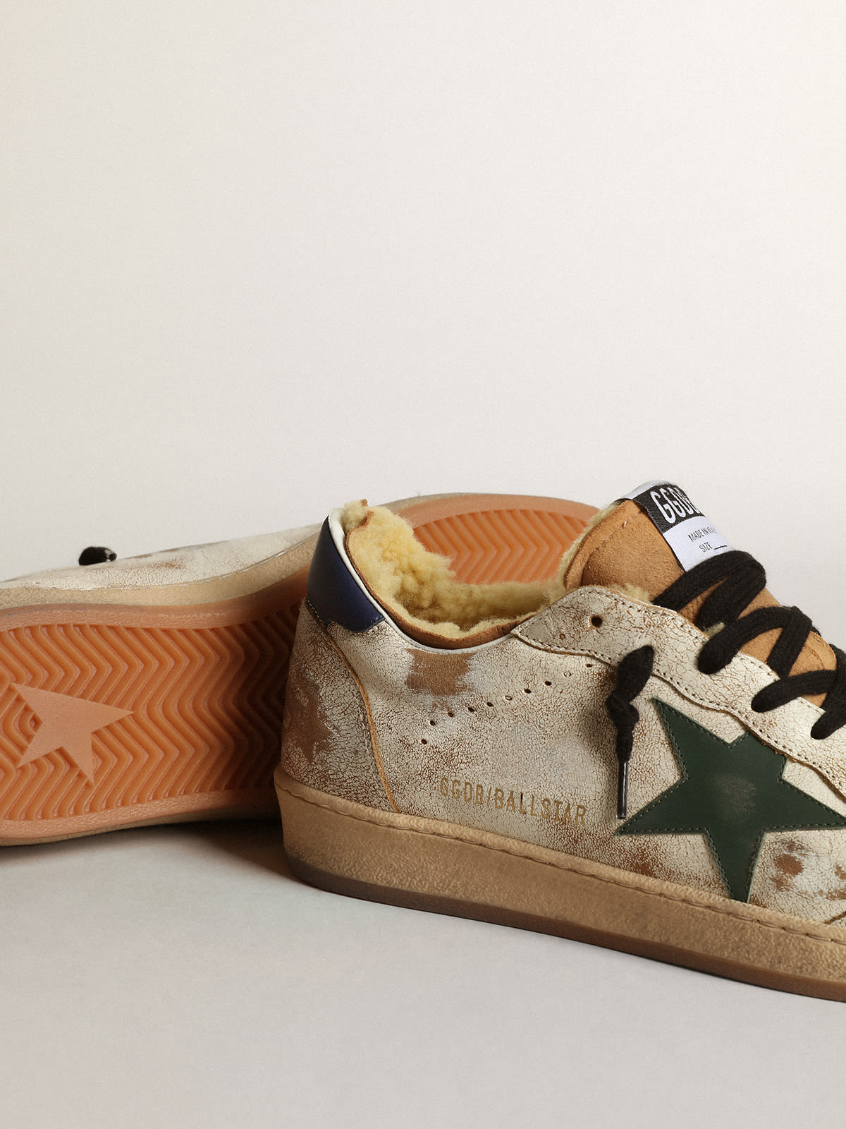 Ball Star sneakers in glossy white leather with dark green leather star and shearling lining Very well made.
