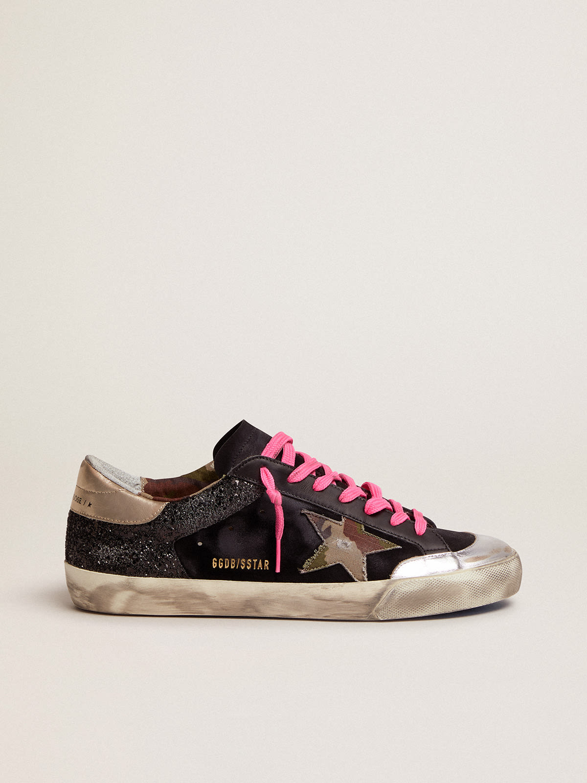 Men s Super Star in black glitter and suede with camouflage star Very well made.