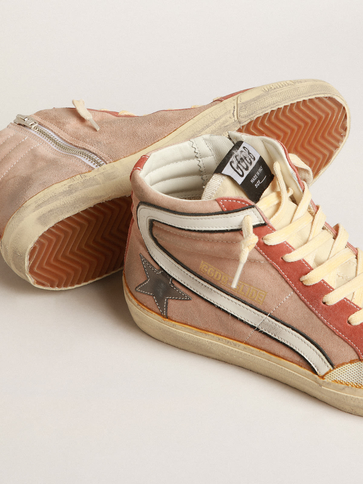 Slide in pink suede with anthracite laminated leather star Very well made.