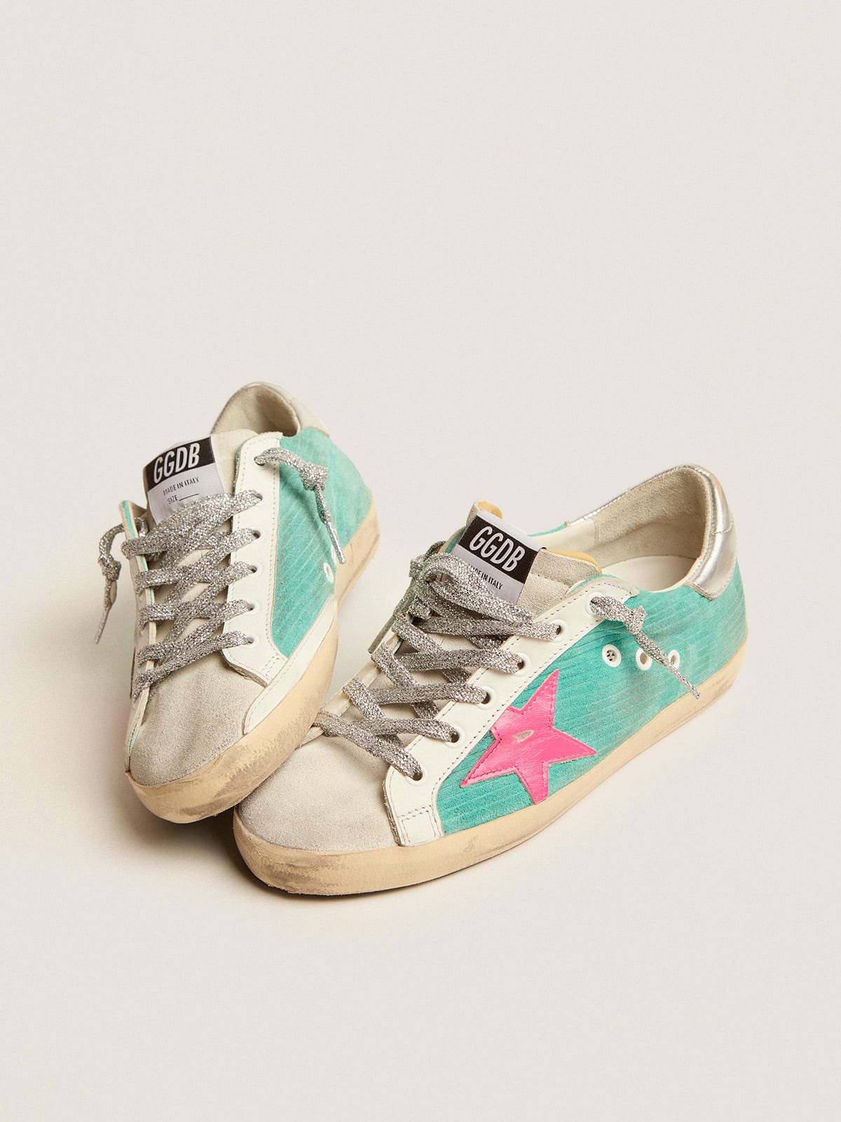 Golden Goose Super Star Turquoise Suede Corduroy Pink Star Very well made.