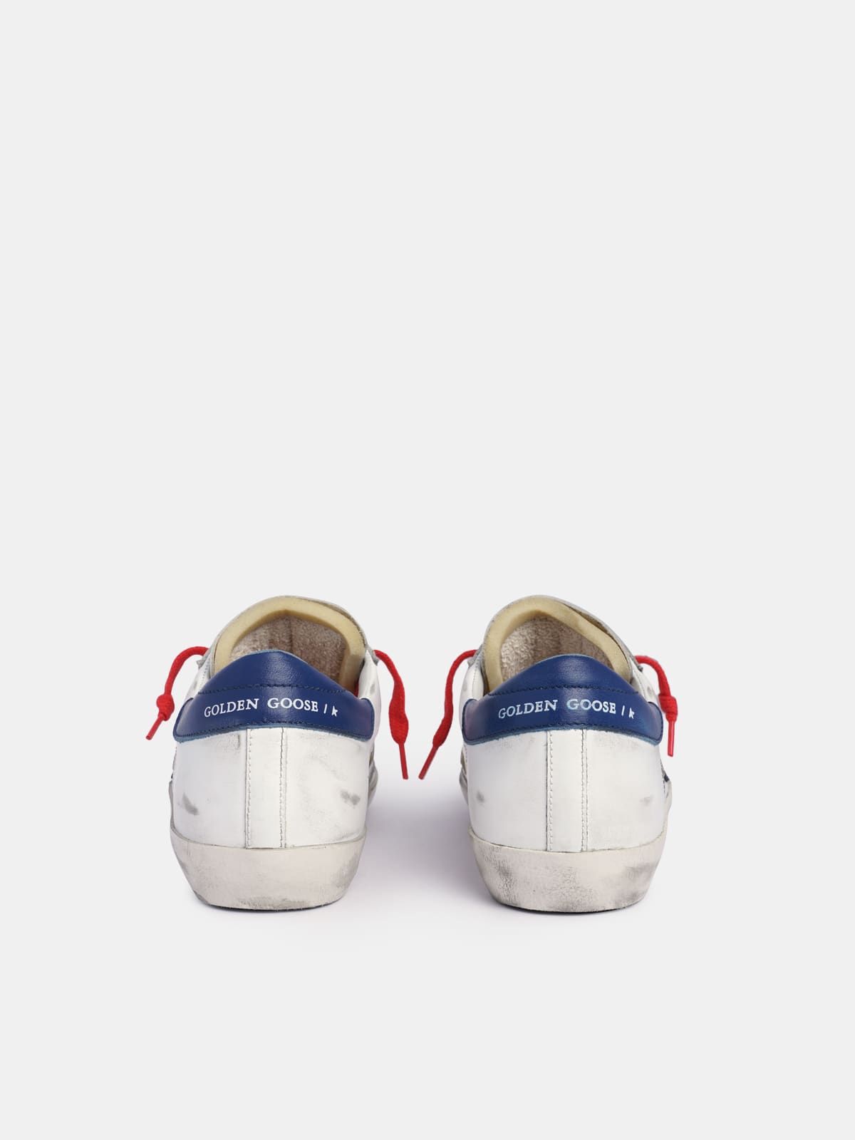 Super Star sneakers in white leather with black star and blue heel Very well made.
