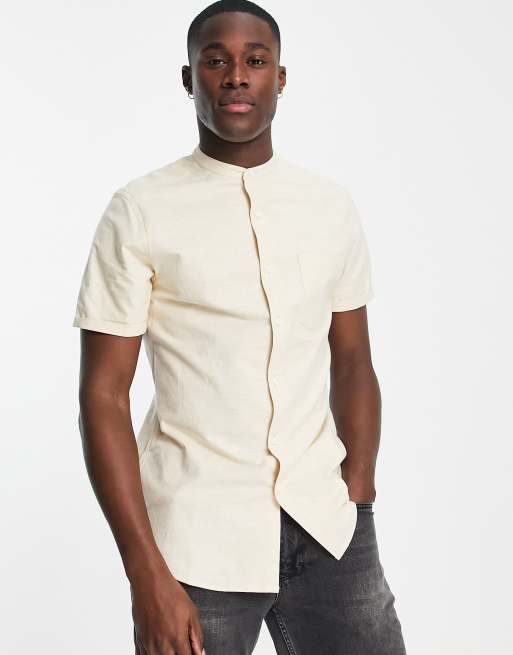 ASOS DESIGN slim oxford shirt with grandad collar in light beige Very well made.