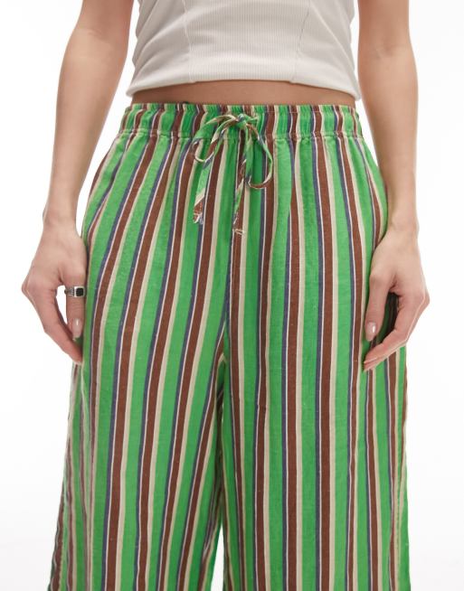 Topshop linen wide leg pants in green stripe ASOS Very well made.