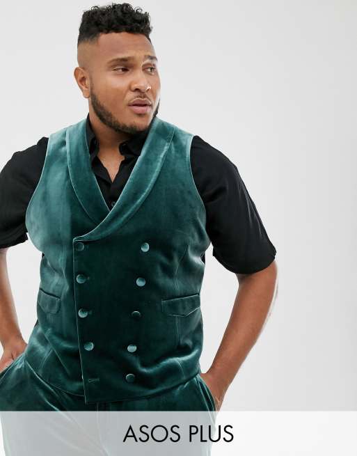 ASOS DESIGN Plus super skinny tuxedo waistcoat in forest green velvet Very well made.
