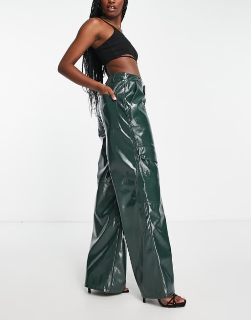 AFRM wide leg faux leather cargo pants in dark green ASOS Very well made.