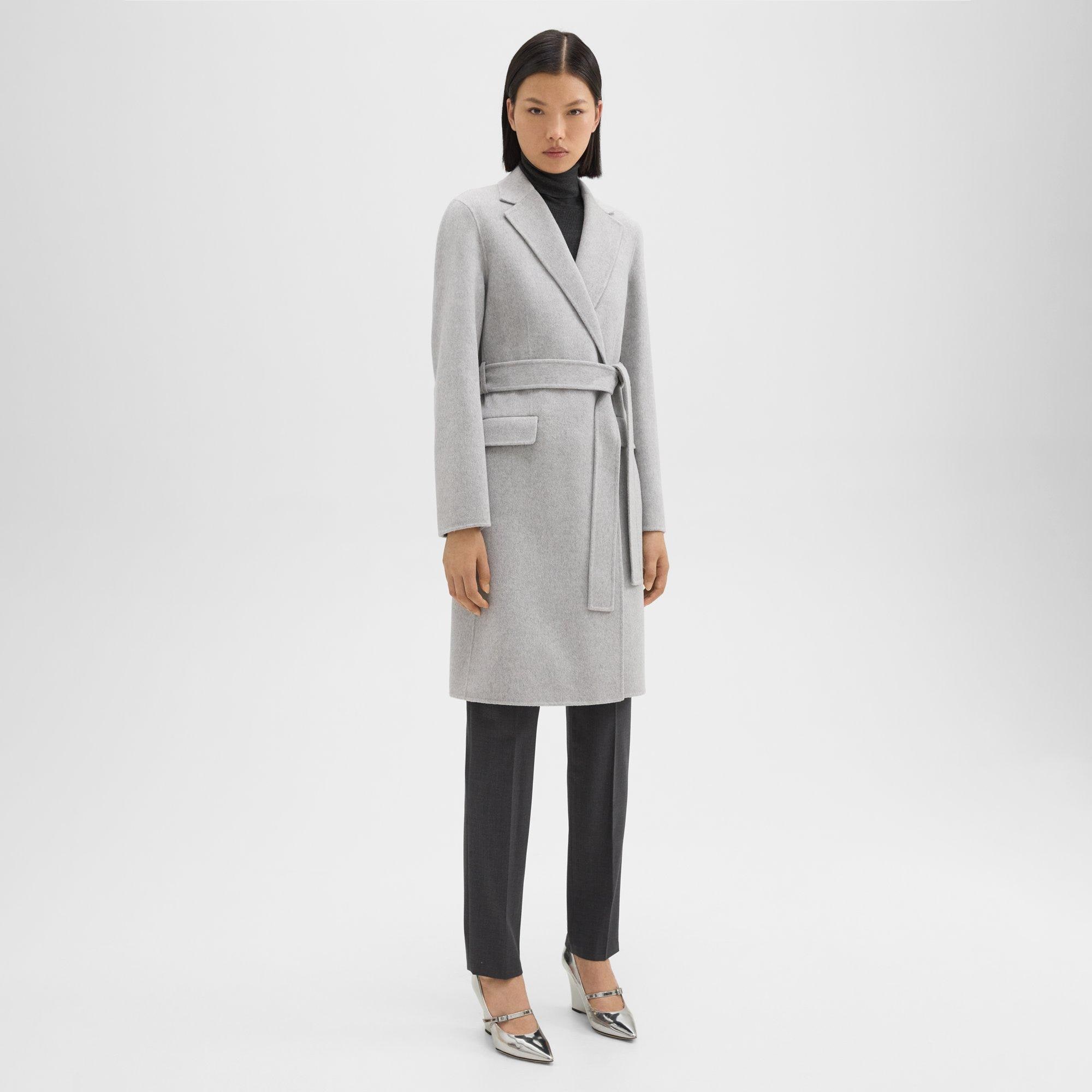 Grey Double Face Wool Cashmere Wrap Coat Theory Very well made.