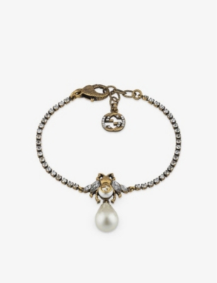 GUCCI Bee embellished brass crystal and glass pearl bracelet Very well made.