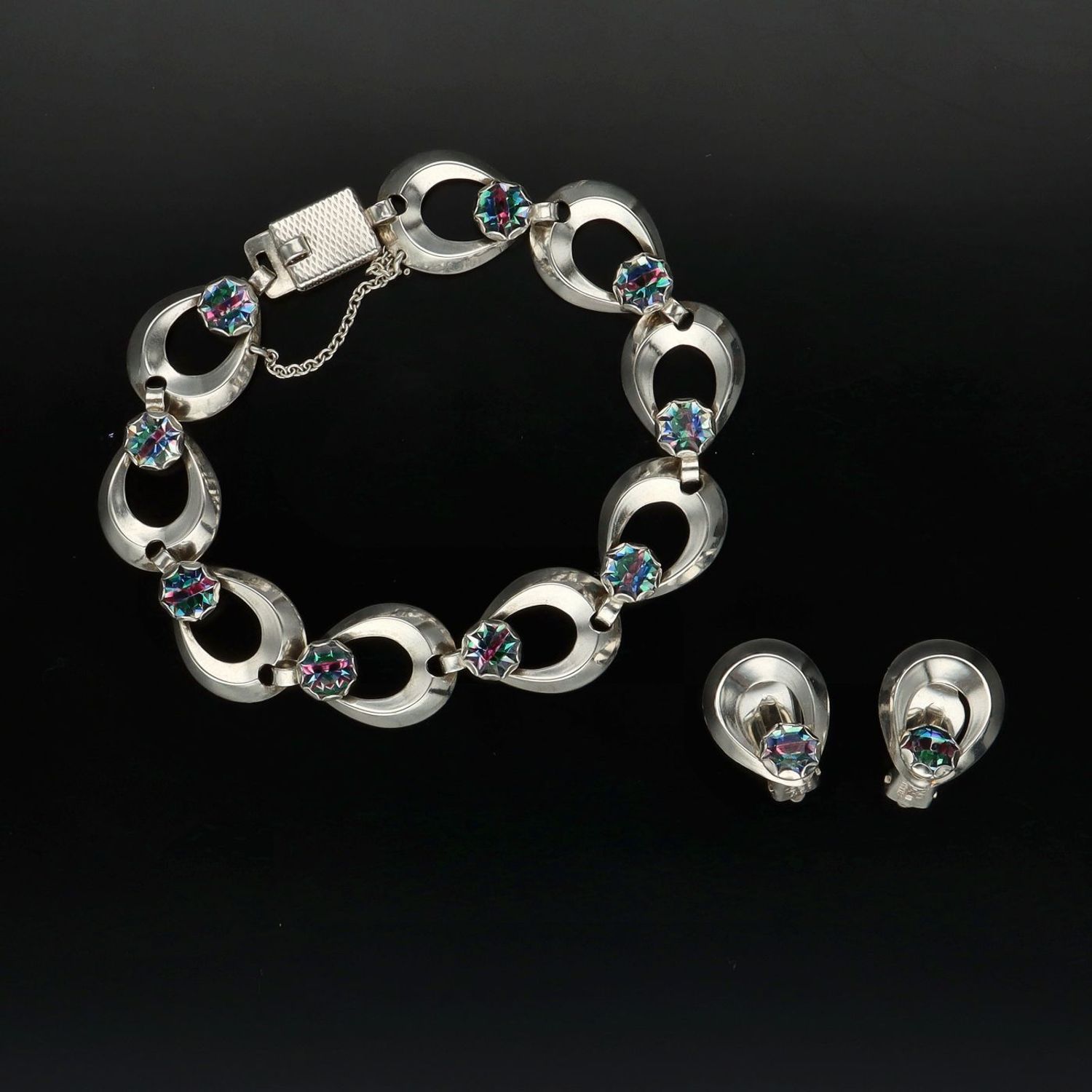Mid Century Sterling Silver Bracelet and Earclip Set by Hermann Very well made.