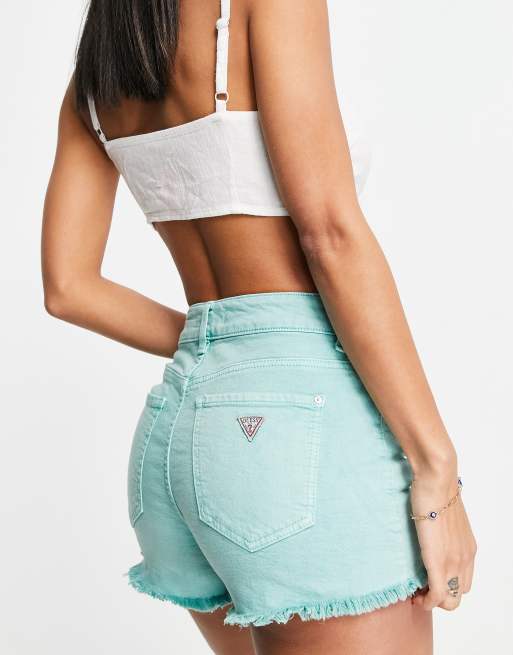 Guess high waist denim shorts with raw hem in mint Very well made.