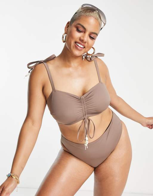 ASOS DESIGN Curve high leg high waist bikini bottom in brown ASOS Very well made.