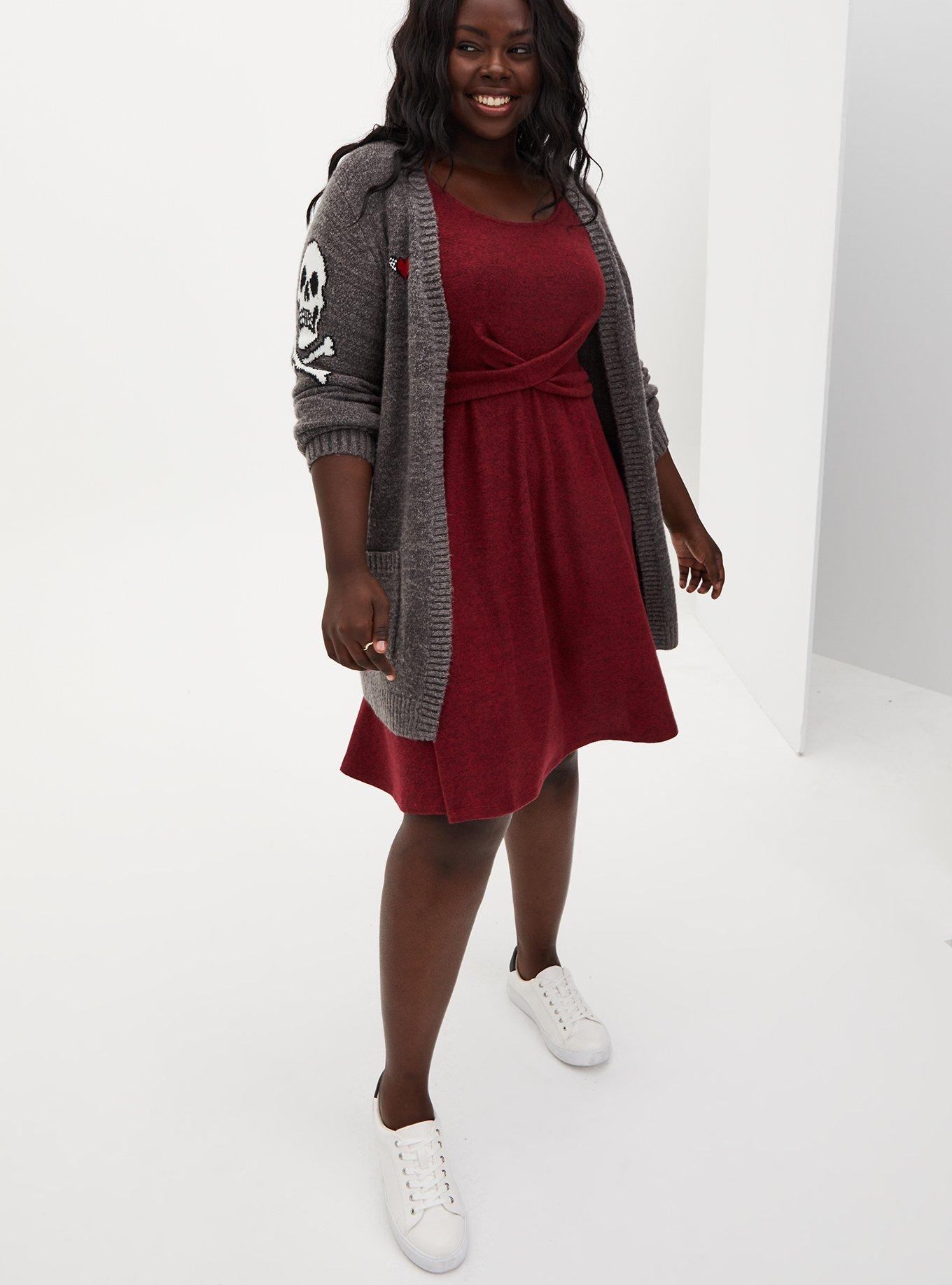 Plus Size Super Soft Plush Dark Red Wrap Waist Skater Dress Torrid Very well made.