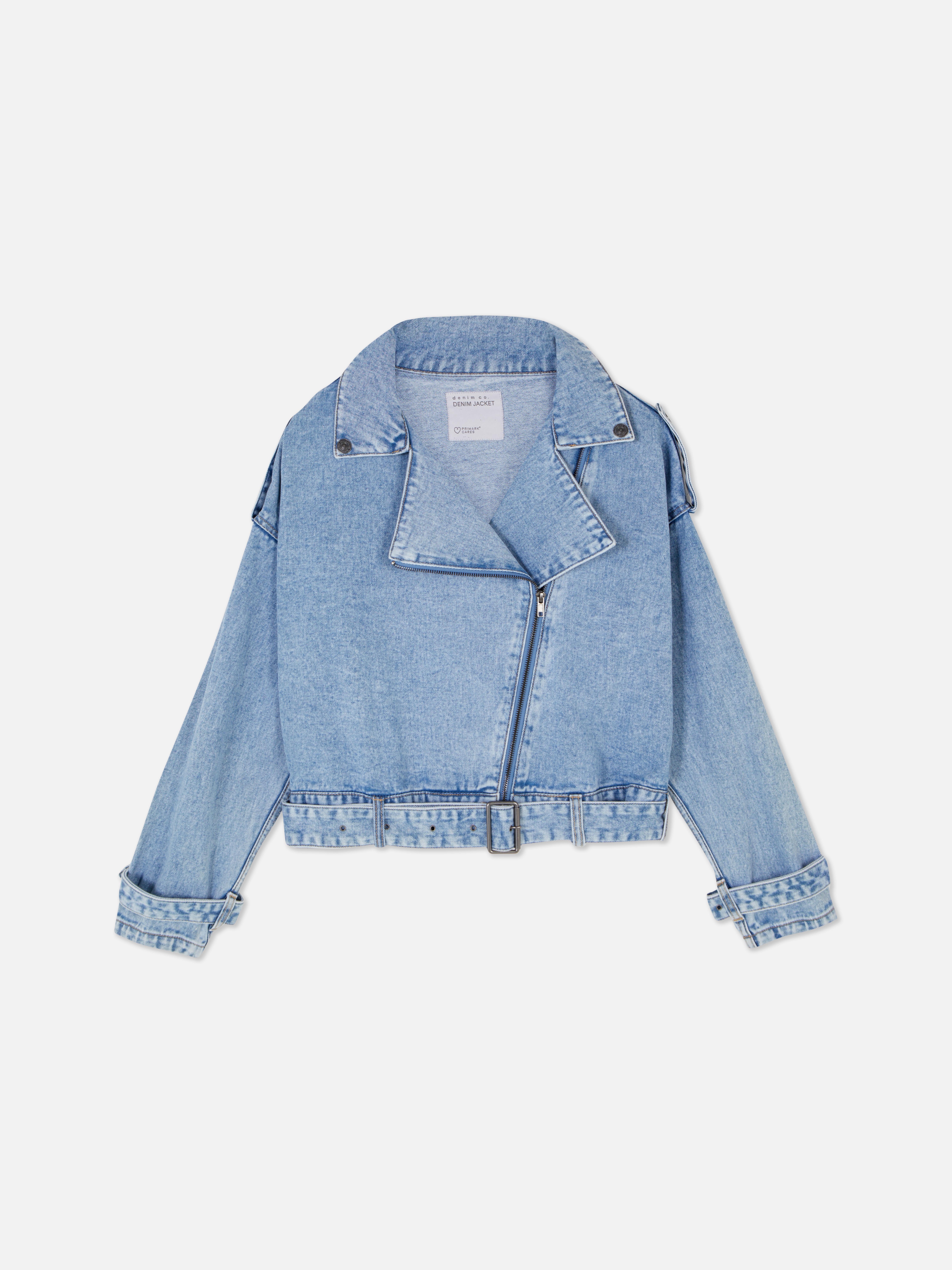 Womens Mid Blue Denim Biker Jacket Primark Very well made.