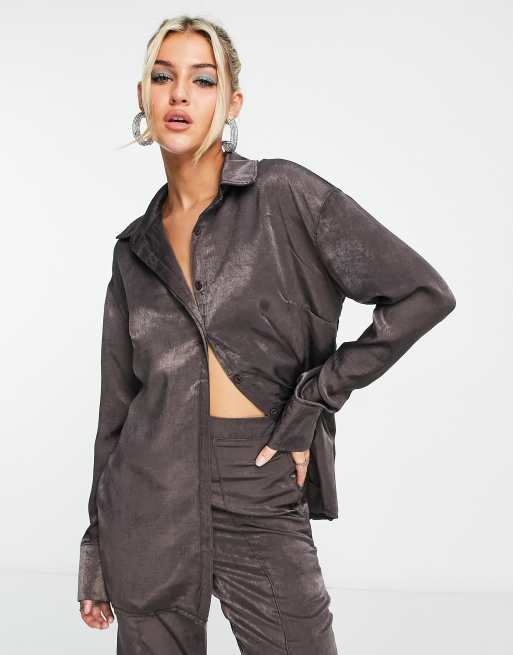 Public Desire Camicia in raso grigio antracite in coordinato Very well made.