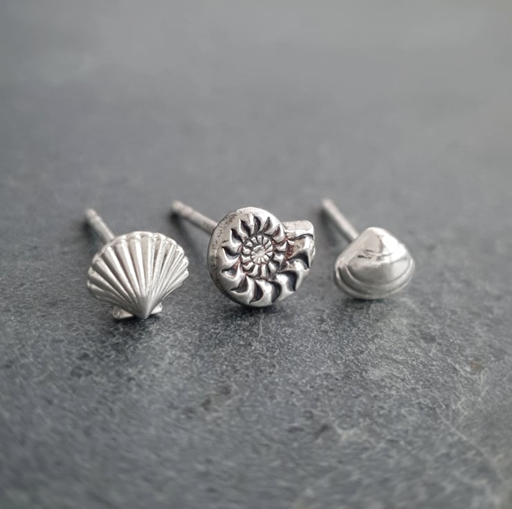 Seashell and ammonite stud earrings in hypoalle Folksy Very well made.