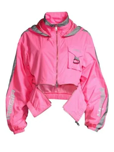 Zip Detail Cropped Windbreaker In Neon Pink Very well made.