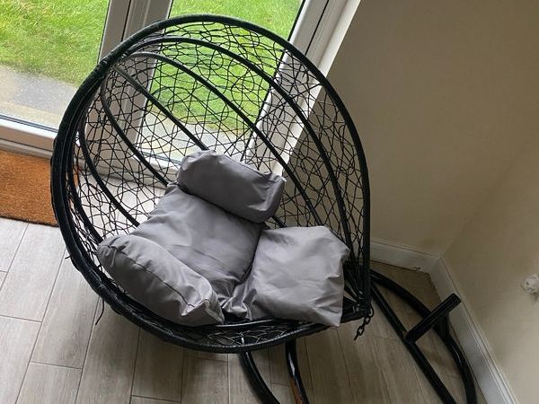 Abreo Round Hanging Egg Chair in Mixed Grey with Dark Cushions Very well made.