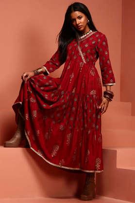 Buy IMARA Red Printed V Neck Viscose Women s Ethnic Dress Very well made.