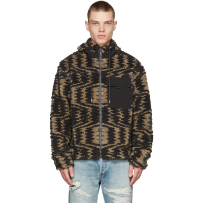 John Elliott Beige Black Polar Fleece Jacket In Morgan Jacquard Very well made.