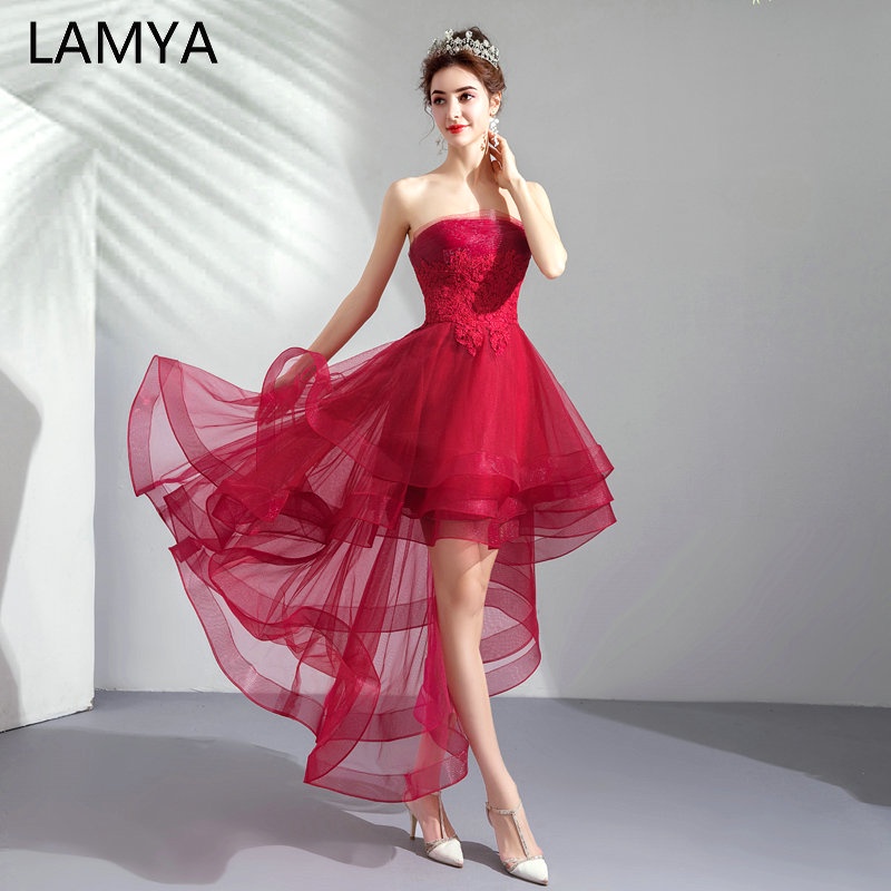 LAMYA 2021 Banquet High Low Prom Dresses Lace Vintage Short Front Very well made.