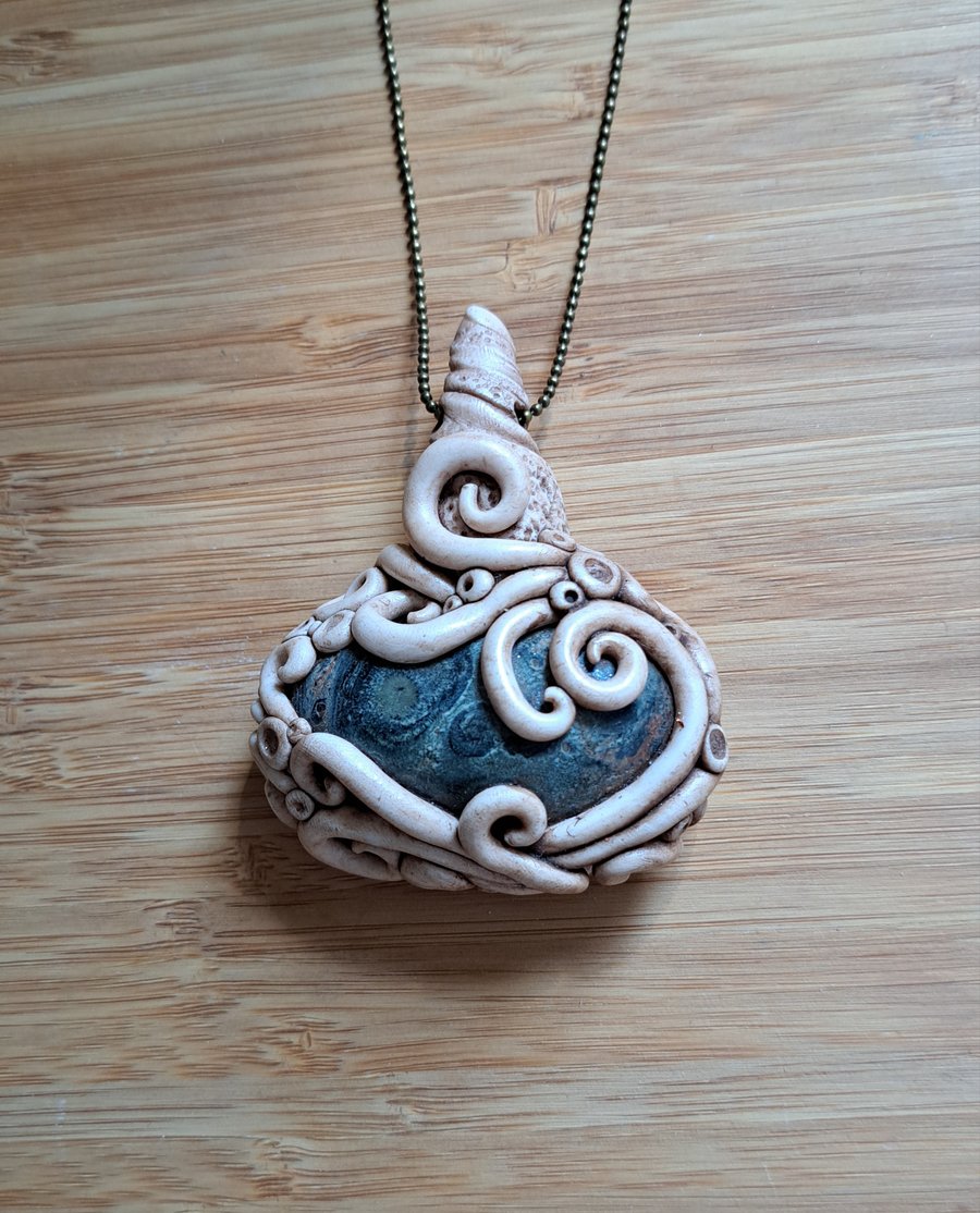 Kambaba Jasper Crystal and Polymer Clay Amulet Folksy Very well made.