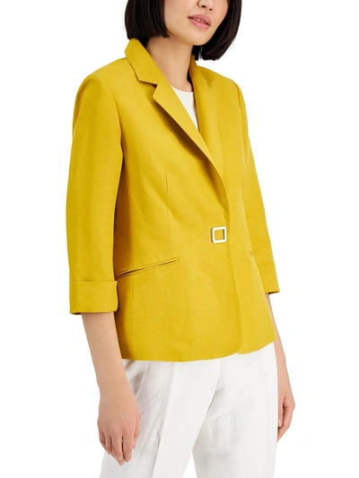 Kasper Linen Flyaway Grommet Trim Jacket Petite Very well made.