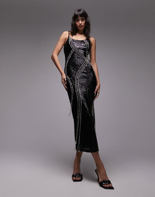 Topshop embellished diamante midi dress in black ASOS Very well made.