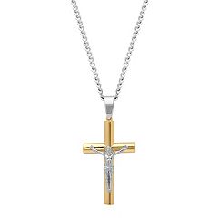Diamond Accent Stainless Steel Cross Pendant Necklace Men Gold Very well made.