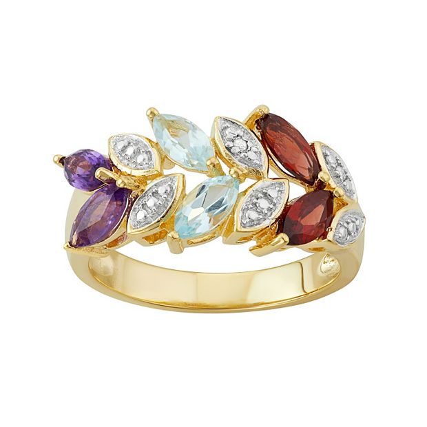18k Gold Over Silver Gemstone Leaf Ring Very well made.
