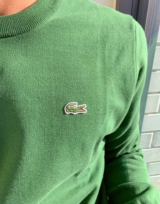 Lacoste Strickpullover in Gr n mit Rundhalsausschnitt und Logo Very well made.