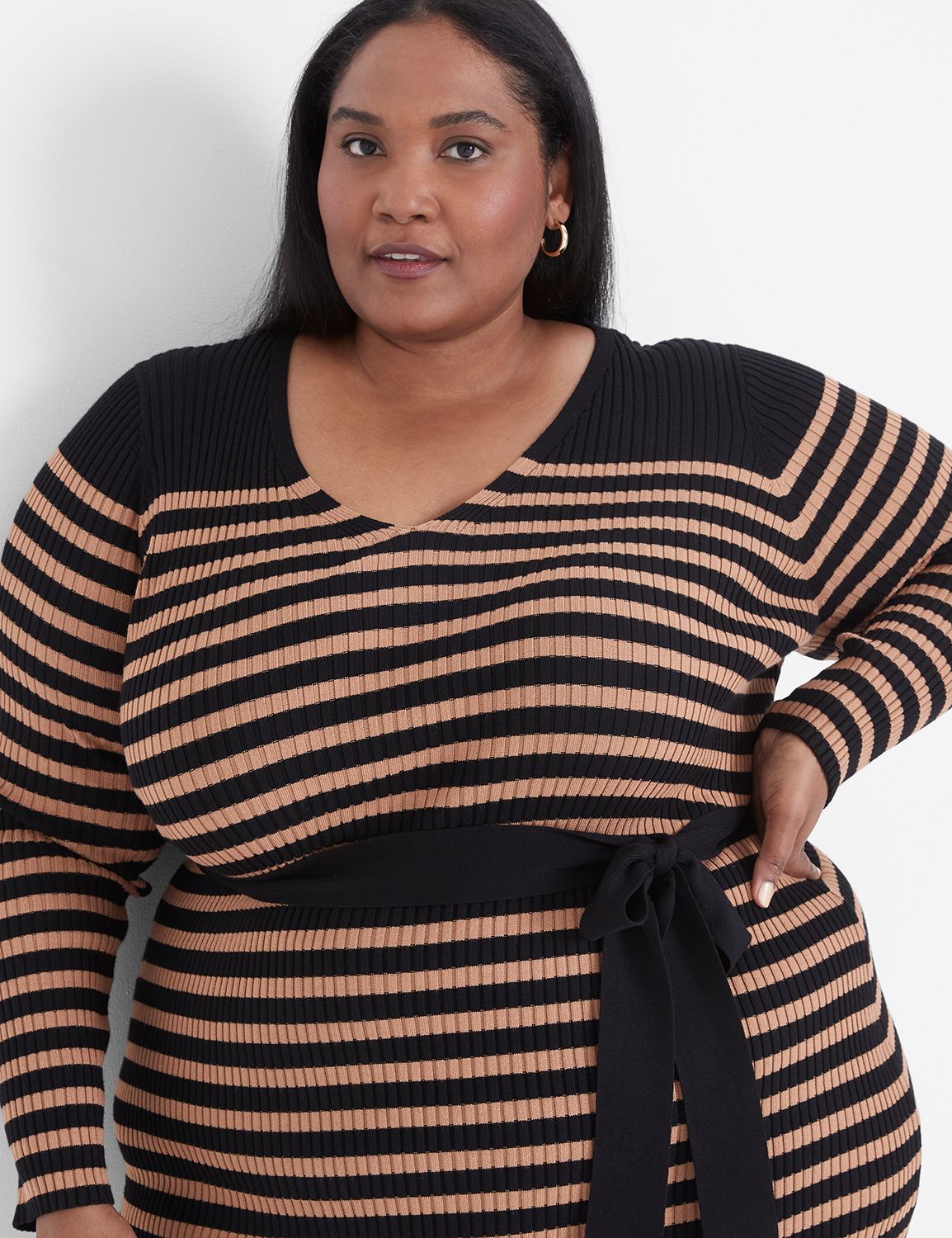 Long Sleeve V Neck Stripe Rib Sweater Dress Very well made.