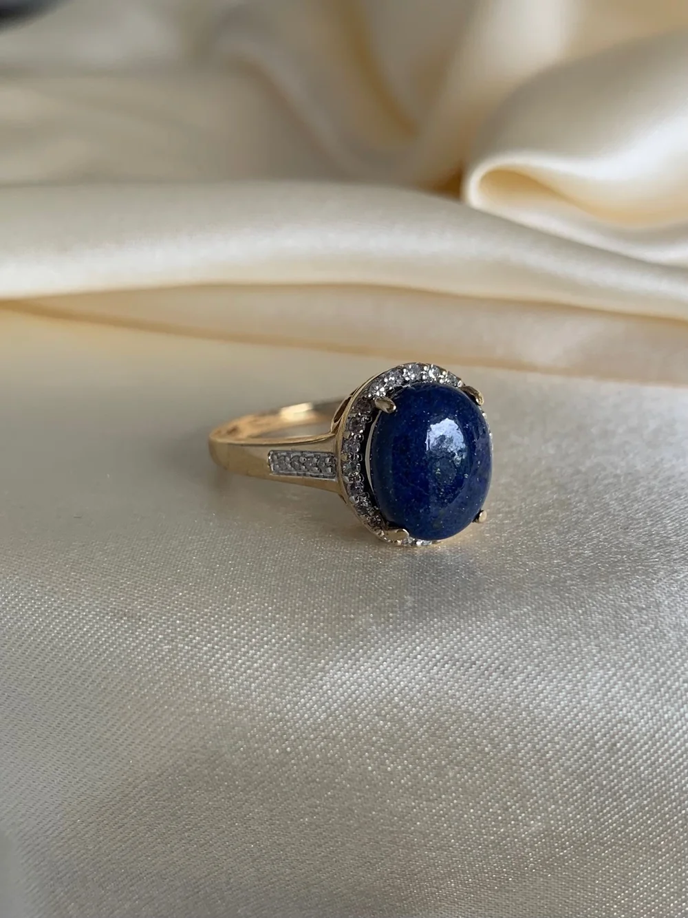 Vintage Lapis Lazuli and Diamond Yellow Gold Ring Gembank1973 Very well made.