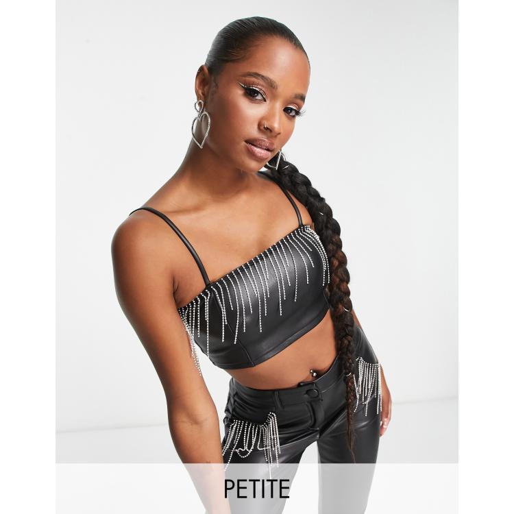 Miss Selfridge Petite faux leather diamante fringe bralet in black Very well made.